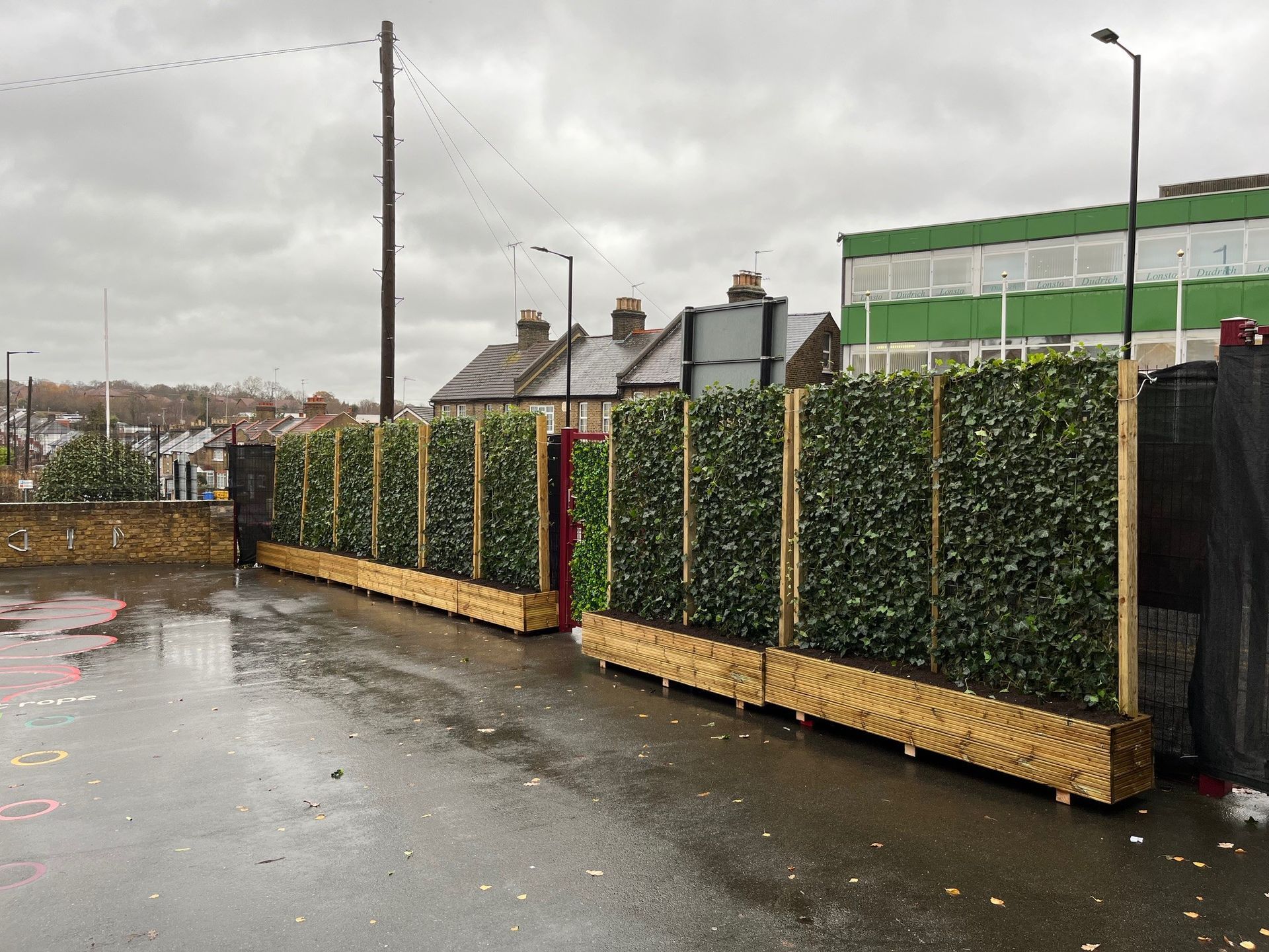 The amount of particulate matter (PM) collected by an average city tree can be matched by just 13 linear metres of ivy screens or living hoarding (covered with hedera helix ivy).